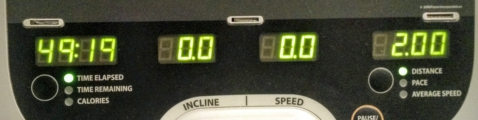 | 49 minutes on the treadmill, walking 2 miles (3.2 km) |